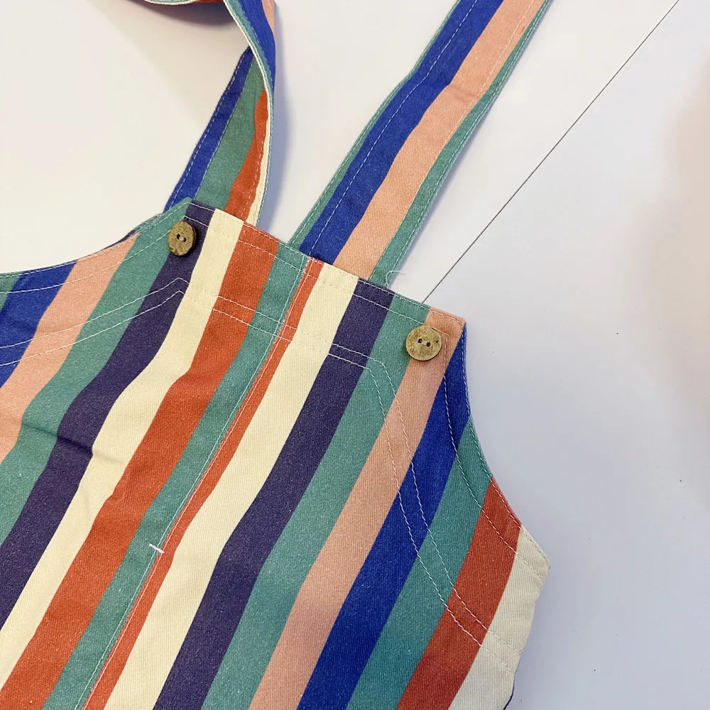 2025 New Spring/Summer Kids Overalls Colorful Stripes Baby Boys and Girls Straps Trousers Children Thin Style Outwear Jumpsuit
