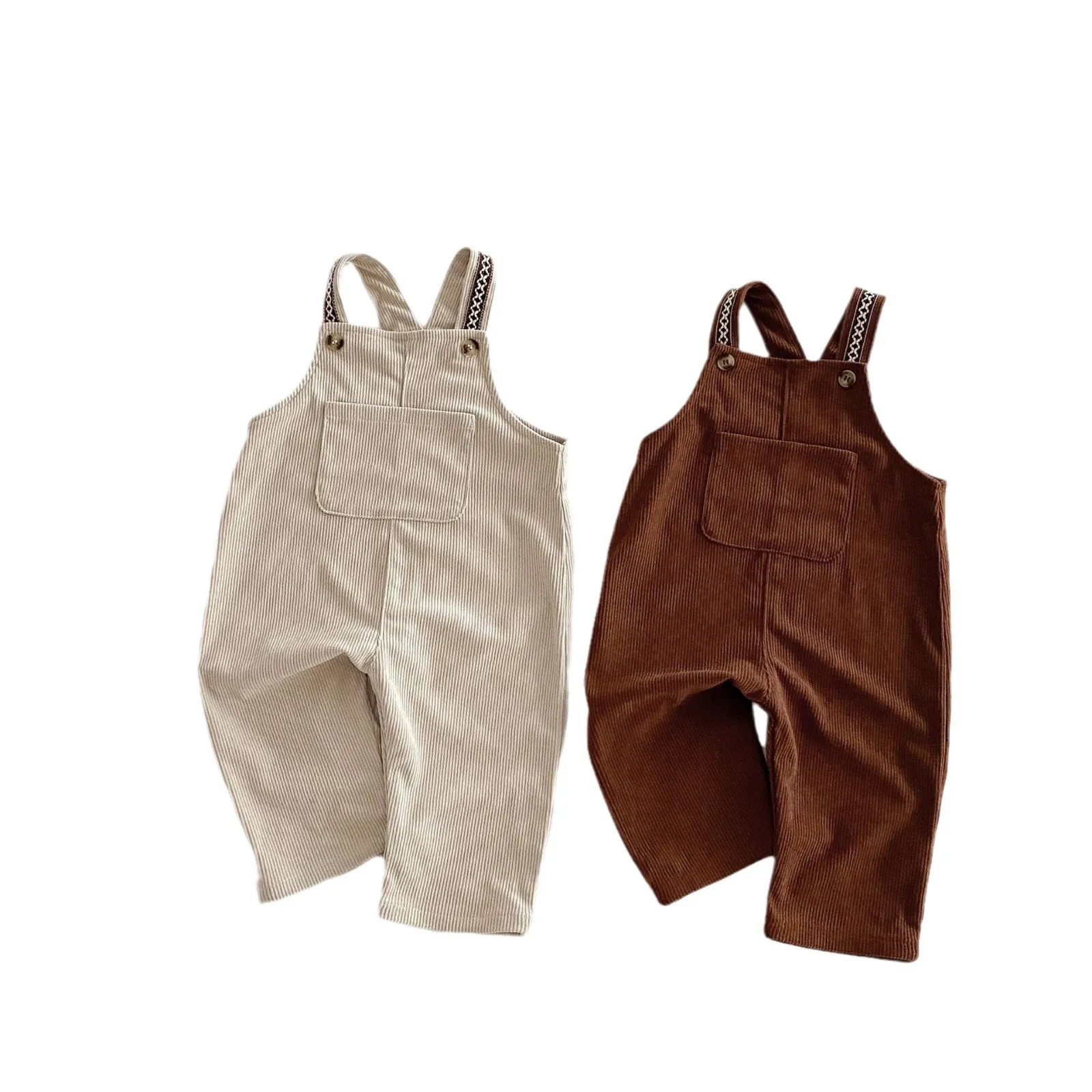 2025 Spring New Children Loose Corduroy Overalls Baby Girls Solid Casual Pants Boys Comfortable Strap Trousers Kids Clothes