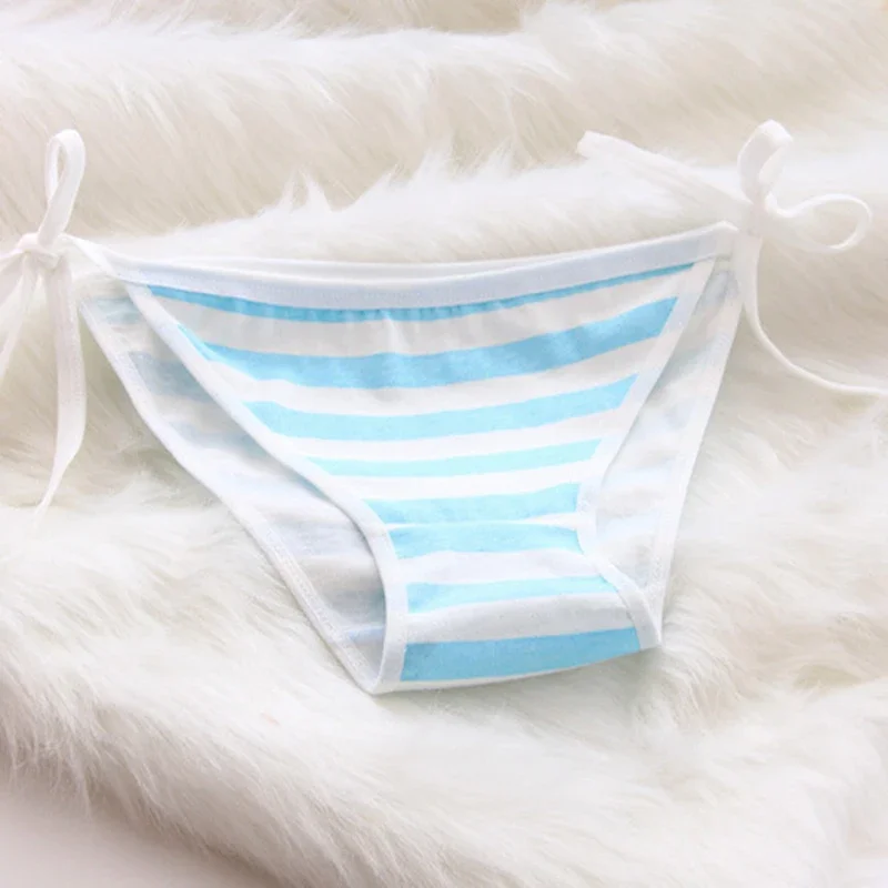 2PCS Women Bra Panties Set Sexy Lingeries Cotton Seamless Kawaii Bikini Lace-up Strap Blue White Striped Suit Female Underwear