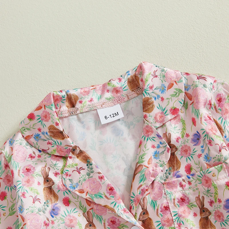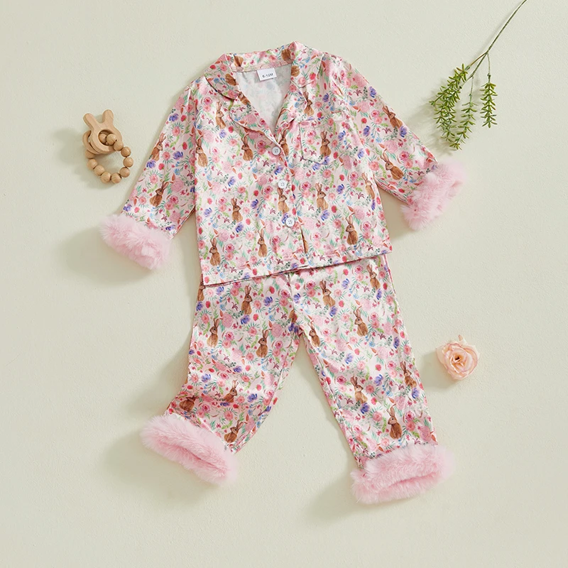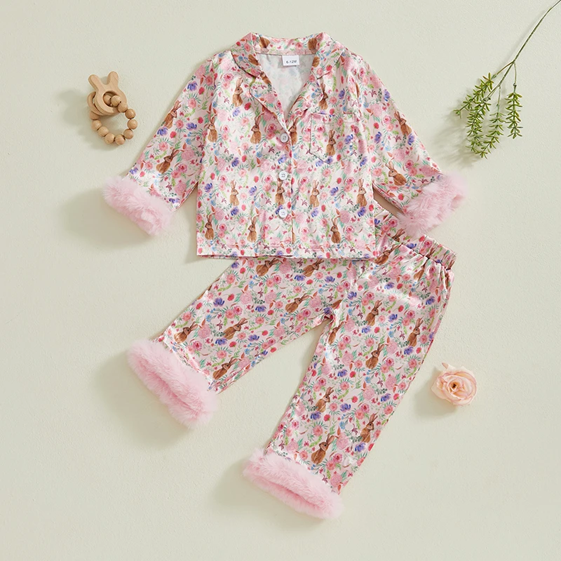 Easter Boys Pajamas Set Bunny Print Cozy Long Sleeve Tops with Matching Pants Sleepwear for Kids