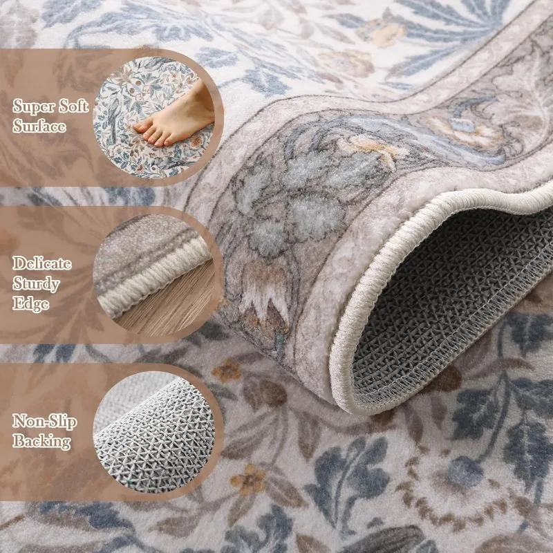 Floral Hallway Runner Rug Soft Flower Botanical Indoor Carpet Bedroom Non-Slip Floor Mat Machine Washable Rugs for Living Room