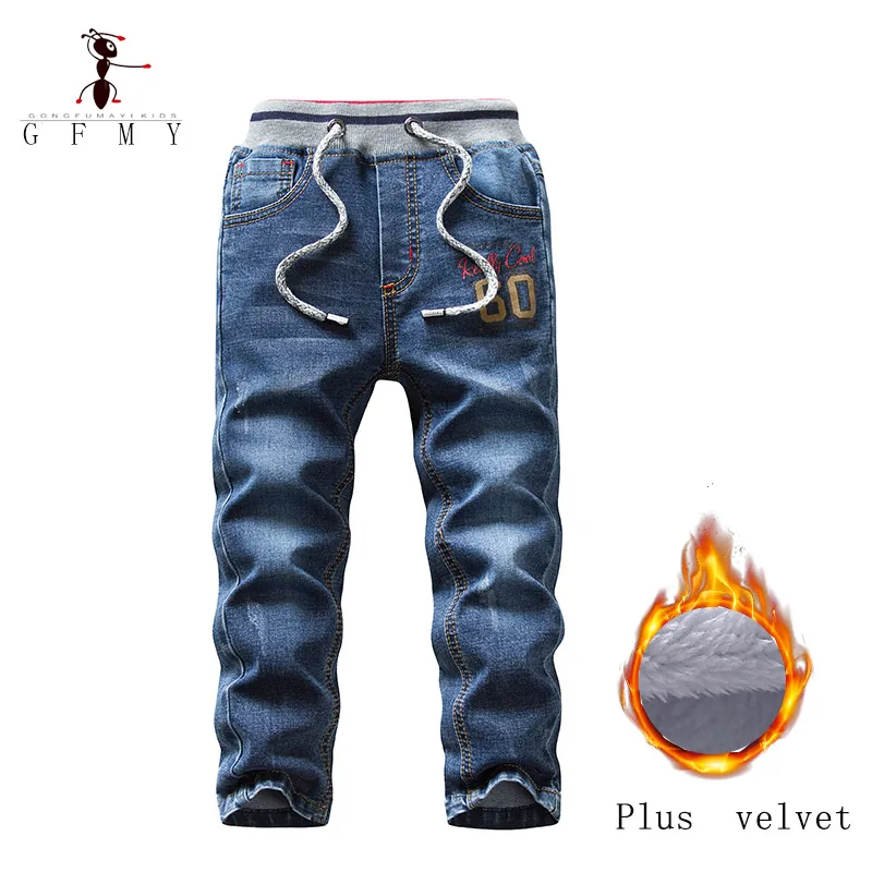 GFMY Brand 2021 Leisure Winter Black Plus Velvet Boys Jeans 3year -10 Years Keep warm Straight type Children’s Pants 1905