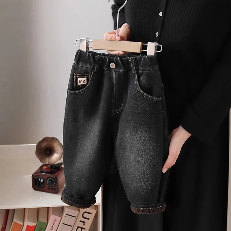Korean Fashion Winter Boys Jeans Adding Velvet And Thickening Wide Leg pants Boys Jeans Children’s Pants Kid Jeans