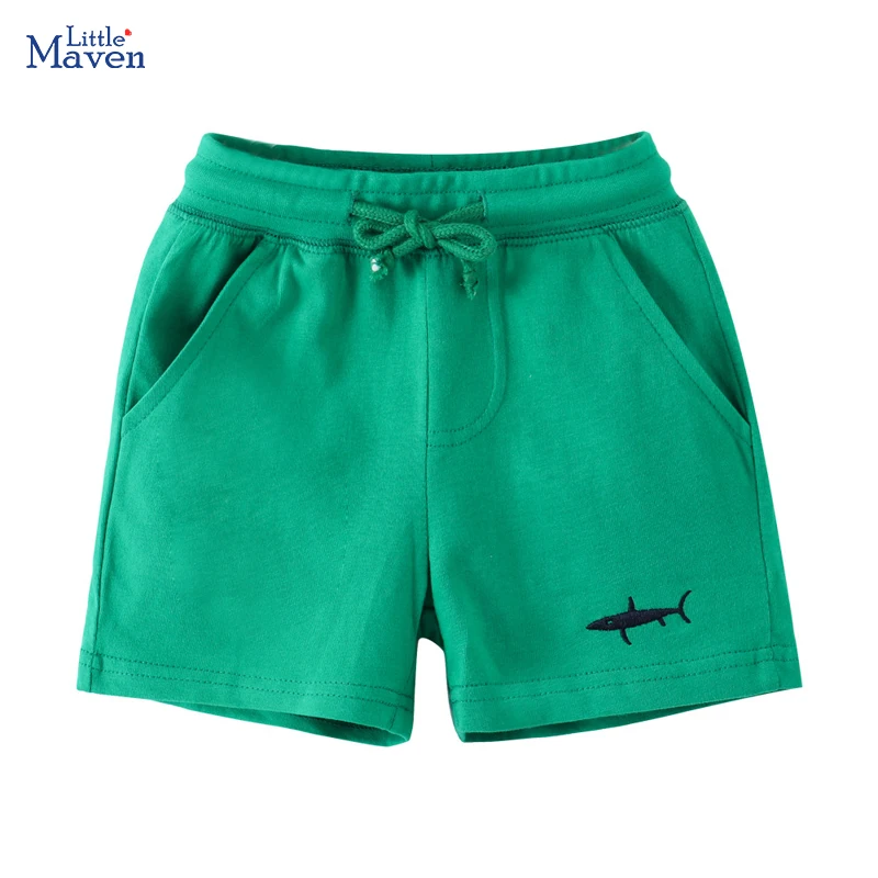 Little maven 2024 Summer Solid Boys Shorts Cartoon Shark Pattern Cotton Casual Breathable Pocket Pants Baby Children Beach pants