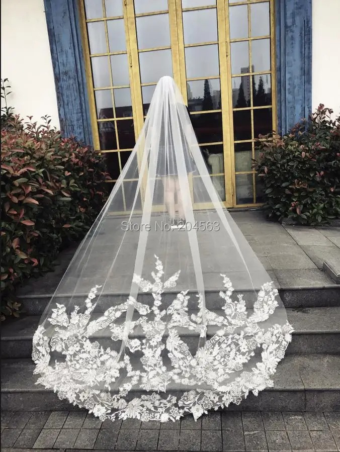 Complete your bridal look with this elegant long one-layer lace wedding veil designed to add timeless beauty to your special day. Made from soft and lightweight fabric, this veil flows gracefully behind the bride and creates a romantic silhouette.