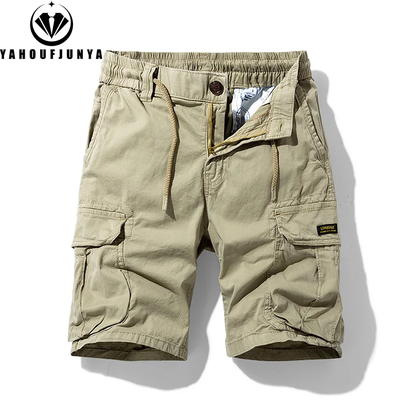 Men Summer Solid Color Outdoor Leisure Cargo Comfortable Shorts Men Elastic Waist Loose Straight High-Quality Design Shorts Male