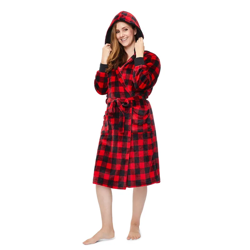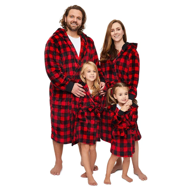 Red Plaid Matching Family Christmas Pajamas Set Long Sleeve Nightgown for Parents and Children Festive Holiday Sleepwear