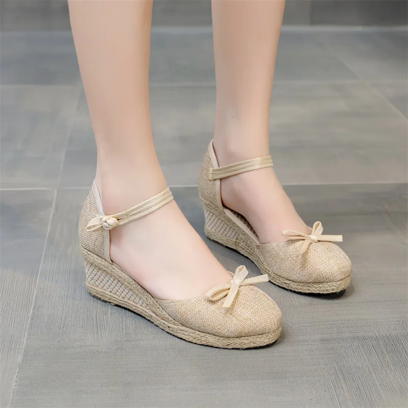 Round Toe Med Sandals Sexy Comfort Shoes for Women Summer Heels Clogs Wedge Large Size Espadrilles Platform Medium Handmade Girl