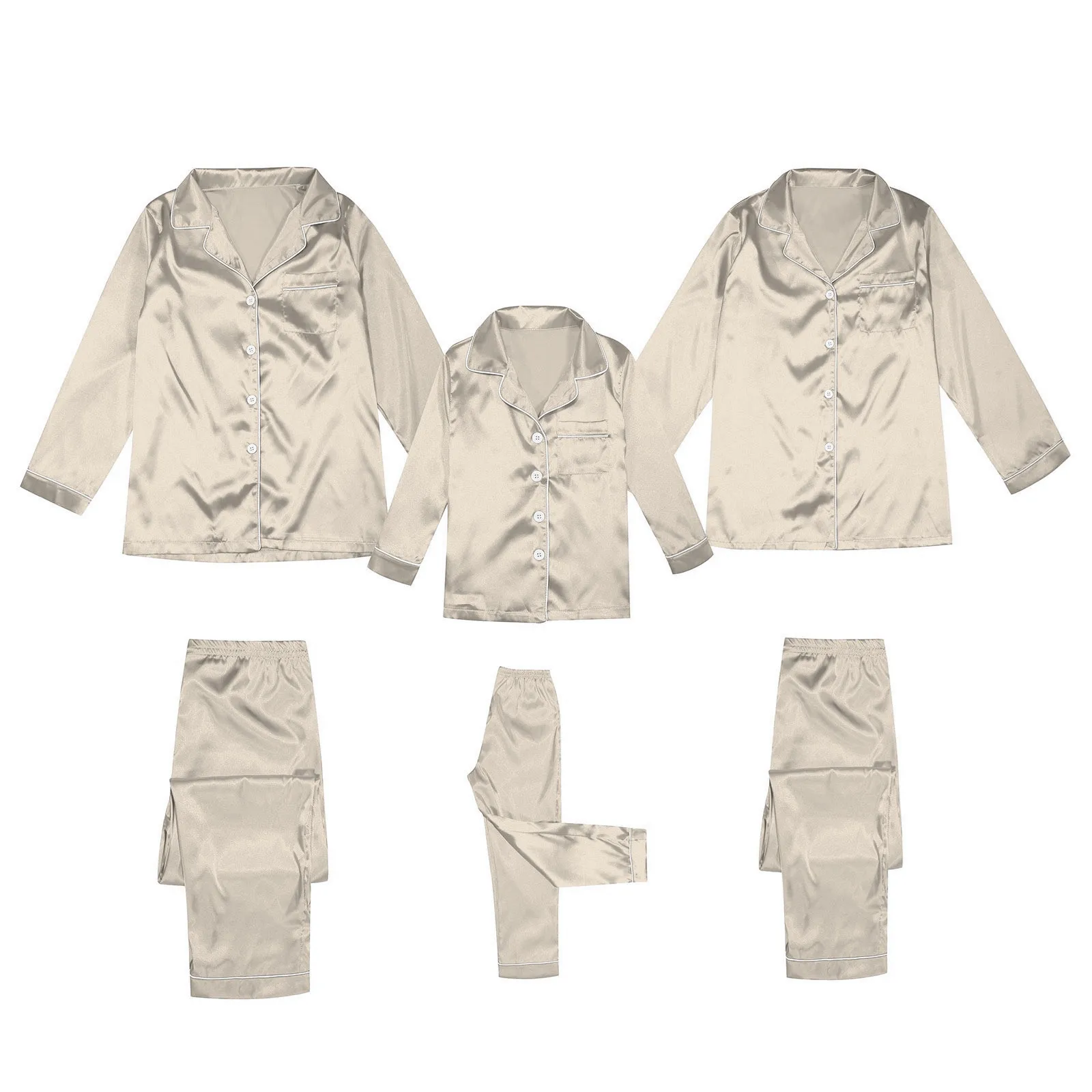 Silk Family Christmas Pajamas Sleepwear Satin Tops+Pants 2pcs Nightwear Pajamas Loungewear Solid Matching Suits For The Family