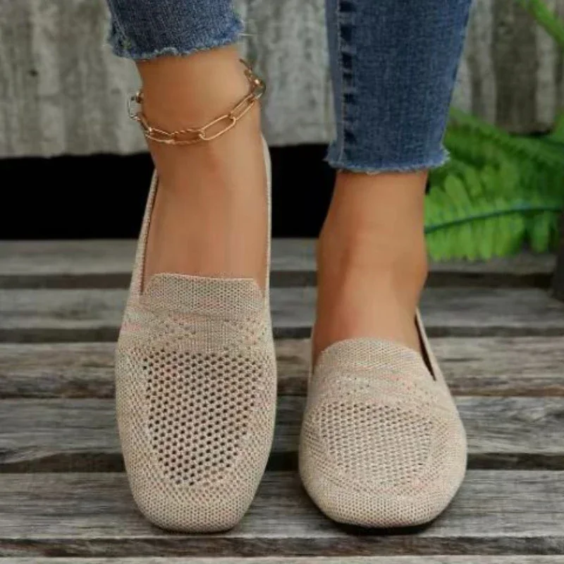Solid Color Square Toe Mesh Loafers Shallow Women Flats Shoes Soft Bottom Knit Ballet Flats Shoes Casual Slip on Boat Shoes 2024