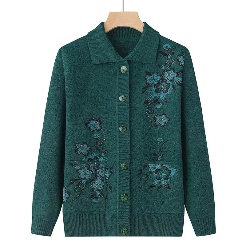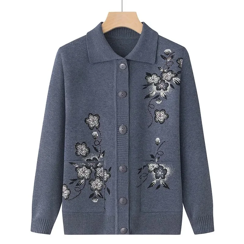Spring Autumn Long-Sleeve Sweater Women Cardigan Coat New Print Middle-Aged Elderly Knitted Bottoming Shirt Female Tops Jacket