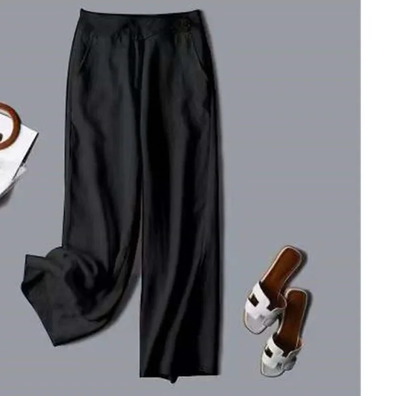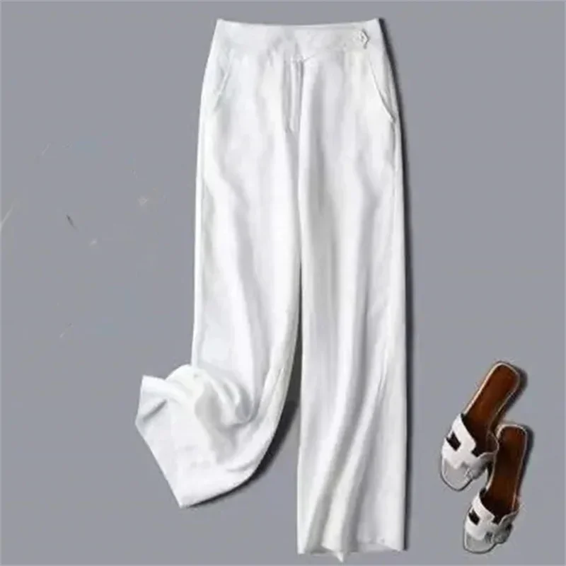 Spring Summer Women Cotton And Linen Wide Leg Pants Female Solid Color Loose Flax Straight Leg Trousers Ladies Leisure Pantalons