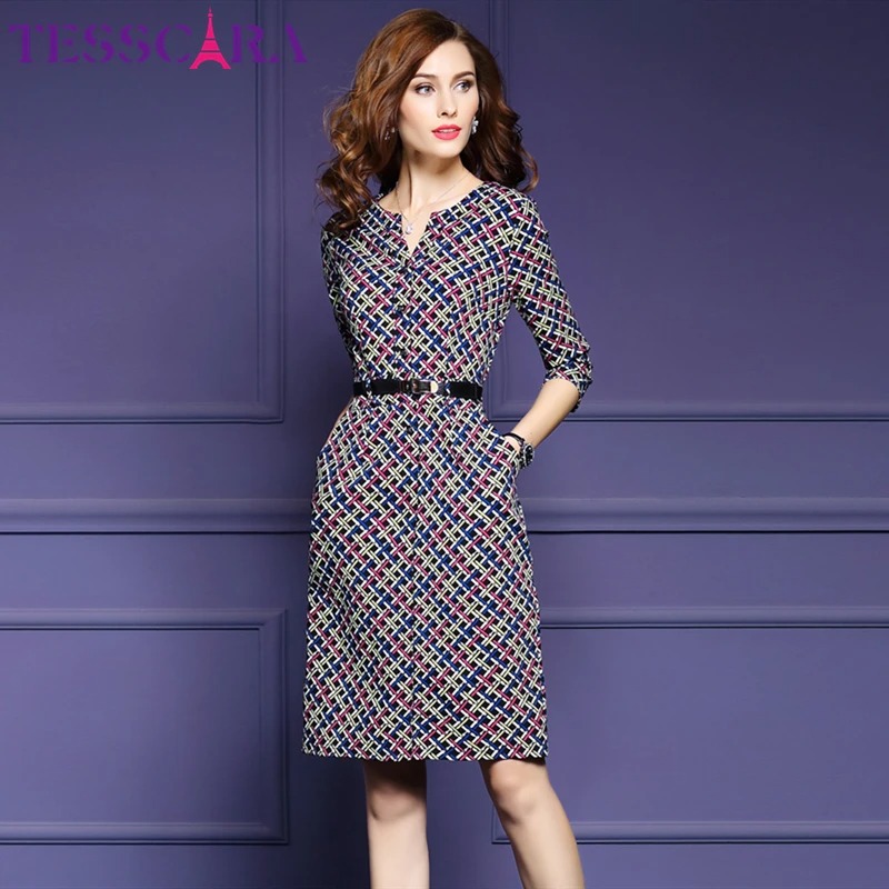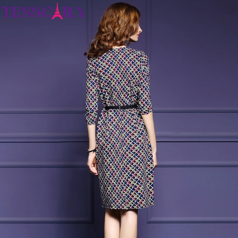 Step into timeless elegance with the TESSCARA Women’s Autumn Elegant Office Dress. Designed with a classic plaid pattern and a slim pencil silhouette, this dress delivers a refined, professional look with a retro touch.
