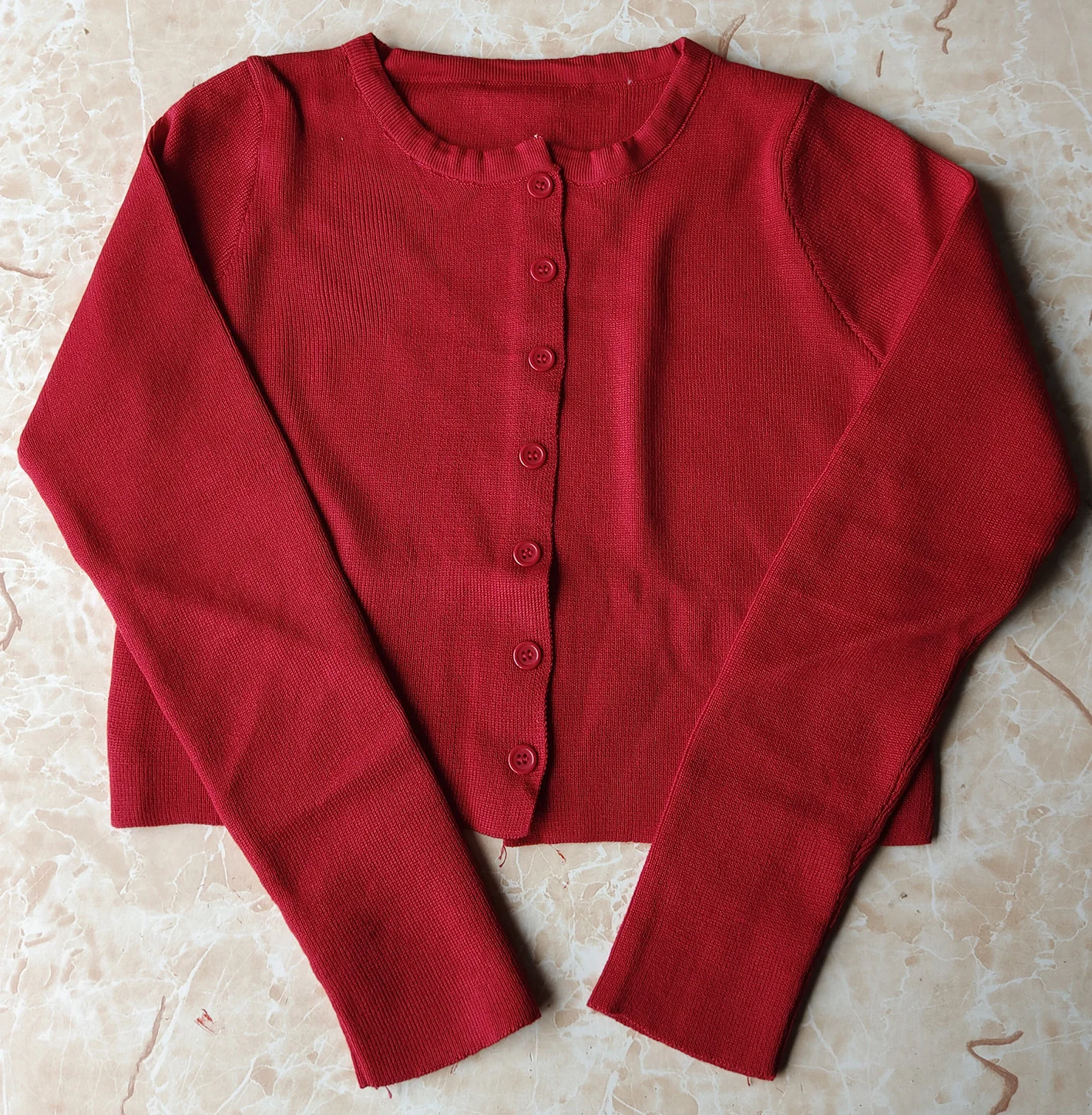 Be the first to review “Woman Sweaters Cardigan Red V-neck Knitted Cardigan Women’s Spring Slim-Fitting Style Short Jacket”