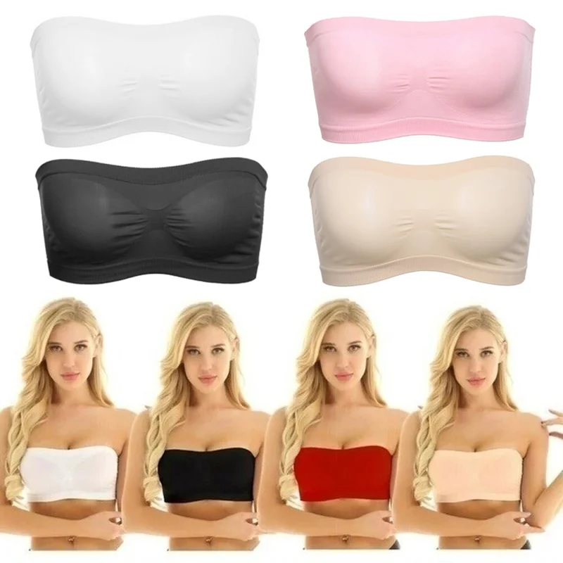 Women Seamless Invisible Bra Tube Top Underwear Lady Crop Top Sexy Lingerie Wrapped Chest Breathable Strapless Mesh Tube Top