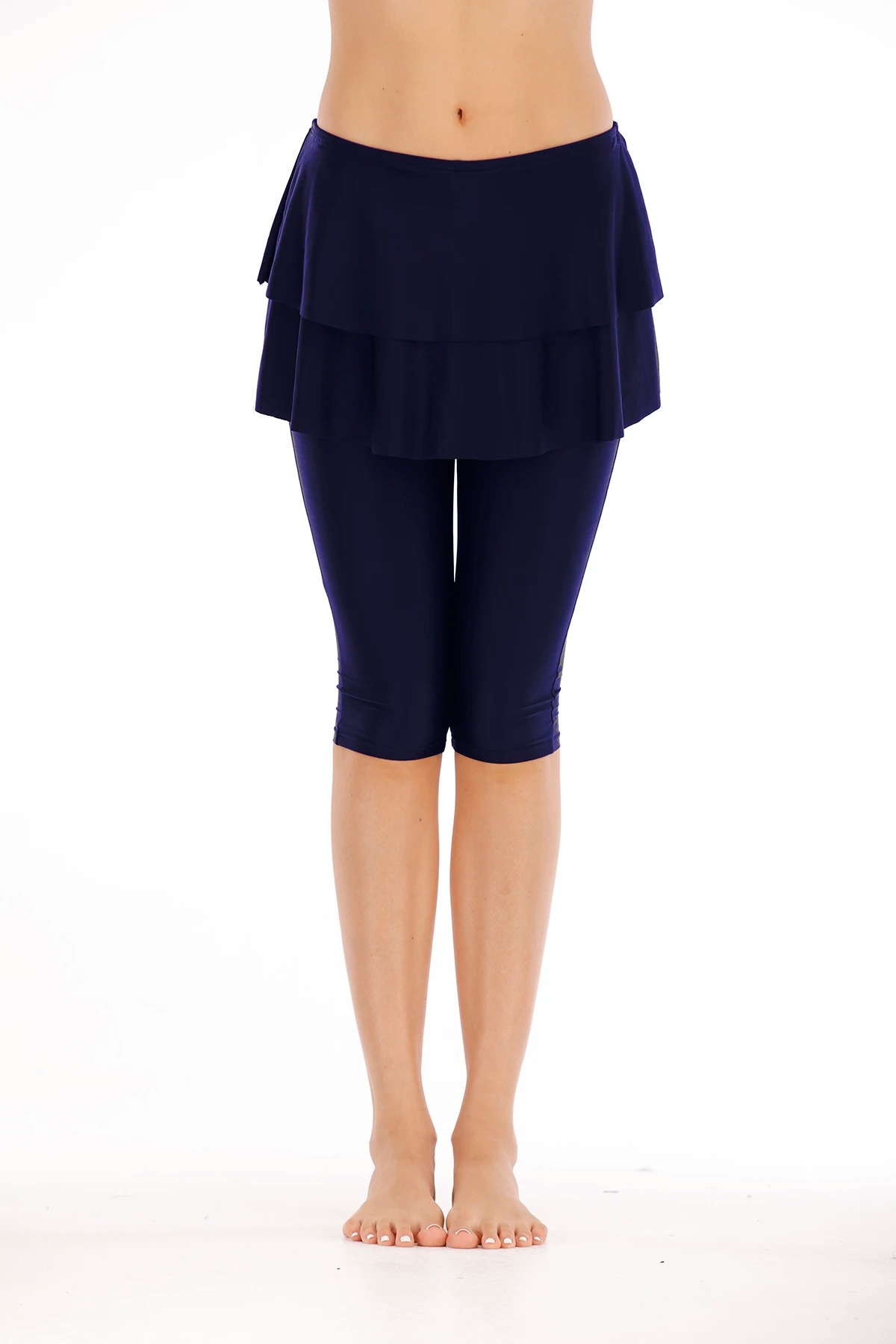 The built-in skirt overlay provides modest coverage while maintaining a flattering, feminine look. Made from quick-dry, stretchy fabric, these swim leggings are perfect for swimming, surfing, beach walks, poolside lounging, or resort wear.