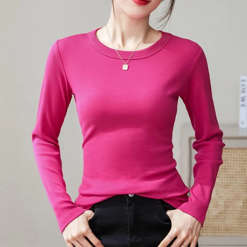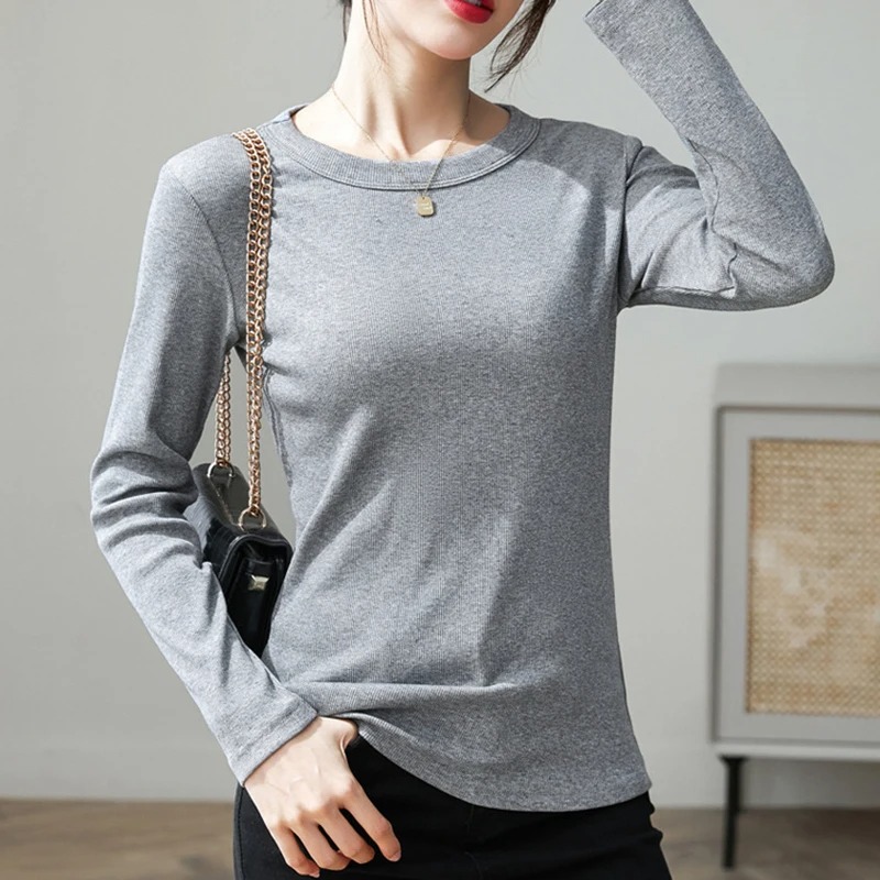 Women’s Korean Long Sleeve Basic T-Shirt – Autumn Slim Fit O-Neck Top