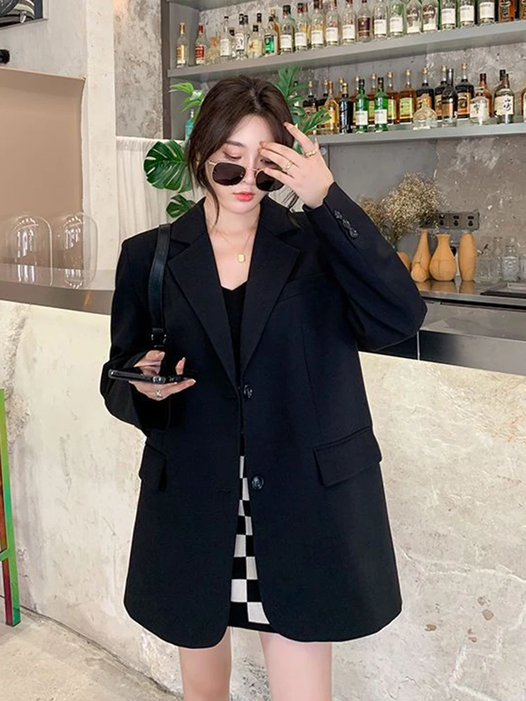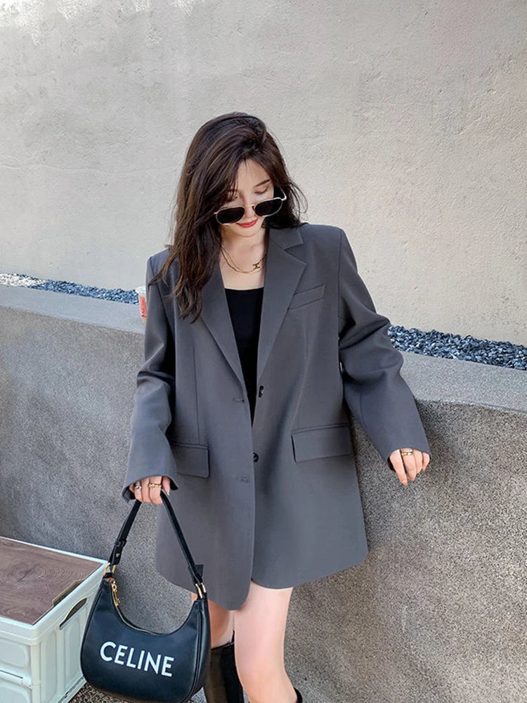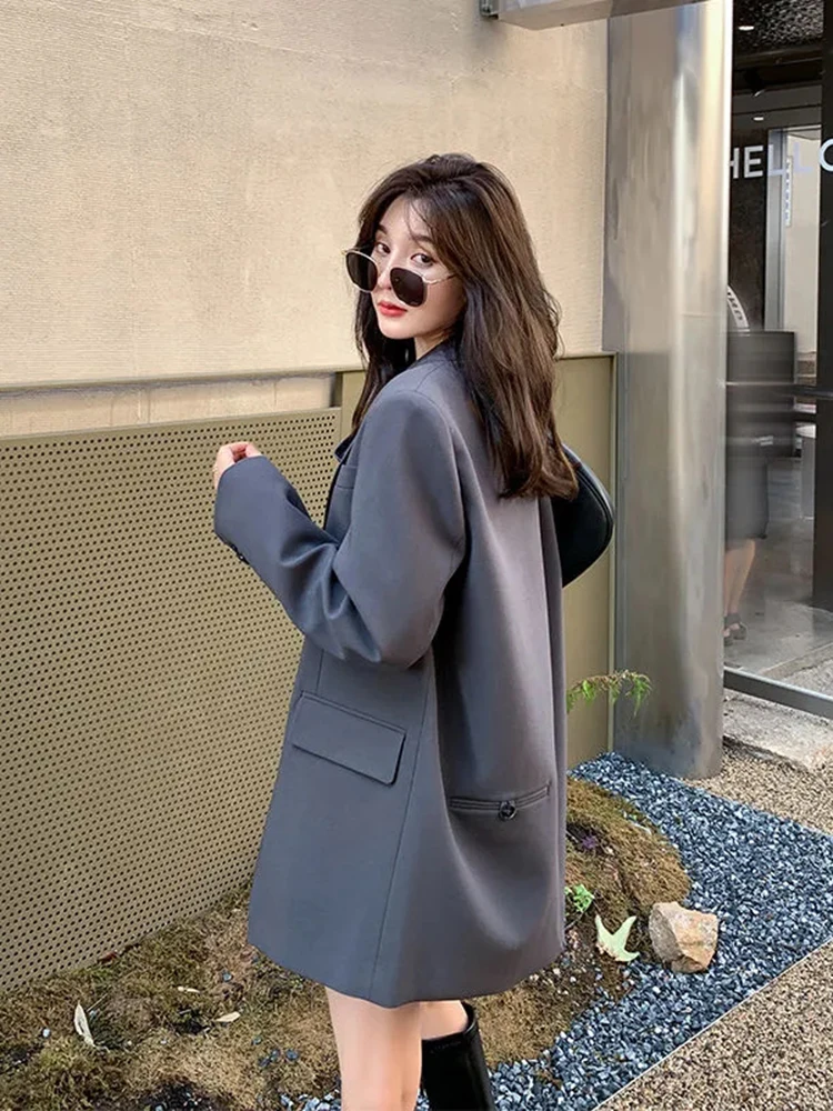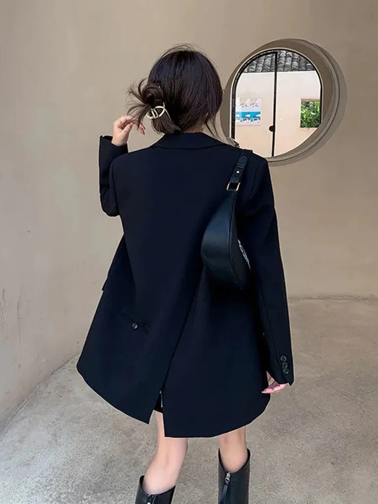 Zoki Back Slit Design Blazer Coats Women Casual Fashion Loose Korean Jackets Streetwear Chic Long Sleeve All Match New Suit Tops